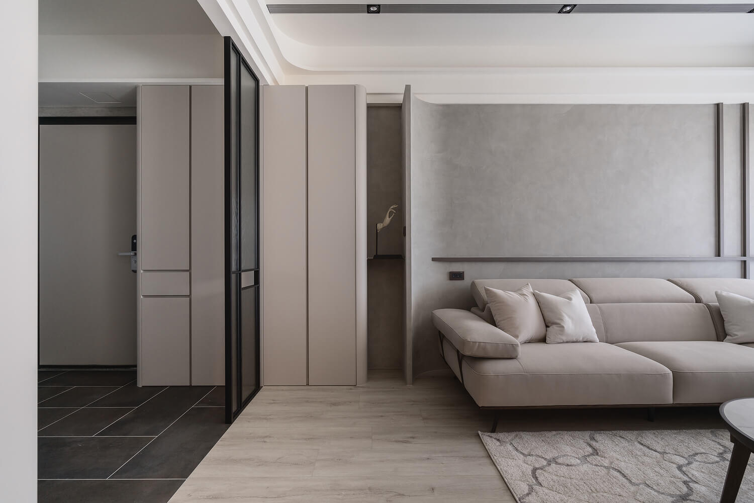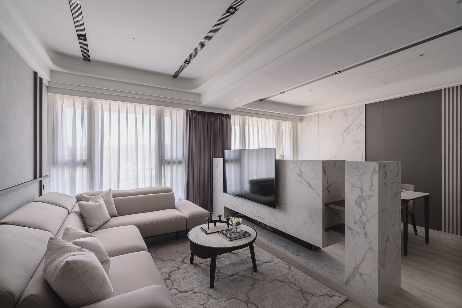 柔和自然光引導著空間氛圍的轉換,陰影與材質細節交織出微妙層次,形成如同漫步時感受到的平靜與緩慢節奏。這不只是一個空間,更是一段屬於居住者的生活故事。