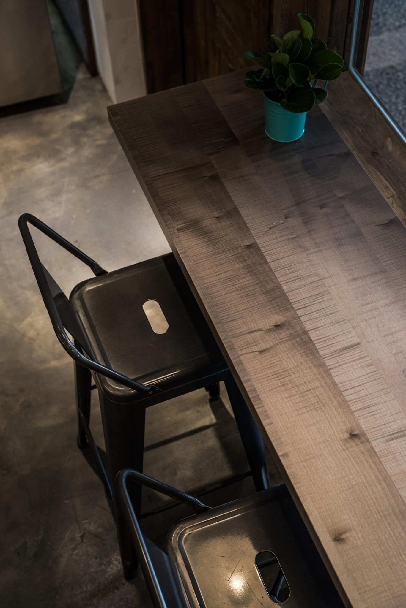 針對餐飲零售空間,我們特別強化了「消費動線」與「工作效率」的整合。透過半開放式的吧台設計,拉近了職人與消費者間的距離。在獵果舖的規劃中,我們將品牌識別色巧妙融入硬裝細節,在極簡的工業輪廓下,依然保有高度的品牌辨識度與親和力。